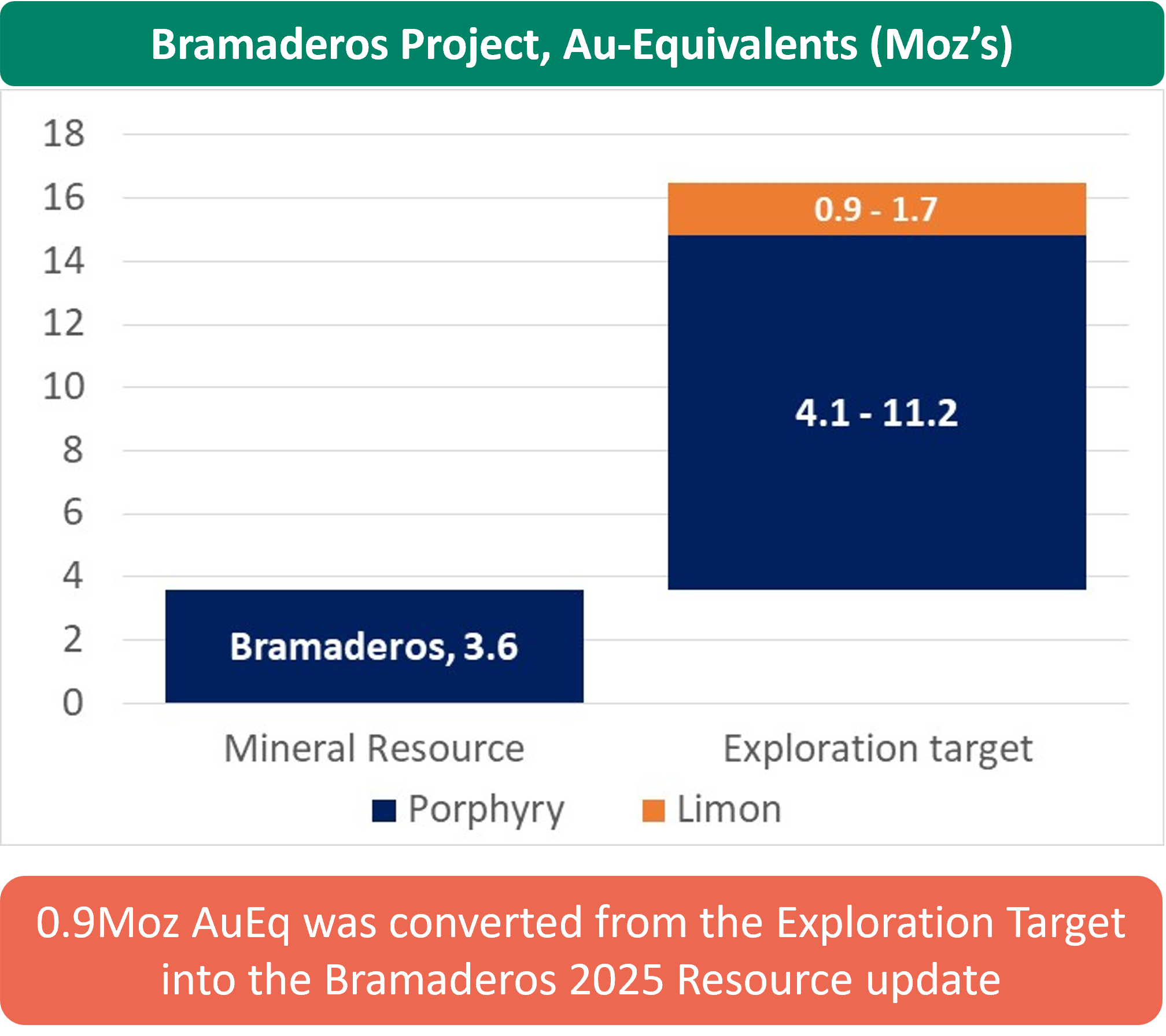 The porphyry gold-copper mineralisation identified by historical and recent Sunstone-managed drilling campaigns at the Brama-Alba-Melonal prospect, along with limited drilling in other prospects across the concession, suggests that Bramaderos has the potential to host significant gold and copper mineralisation.